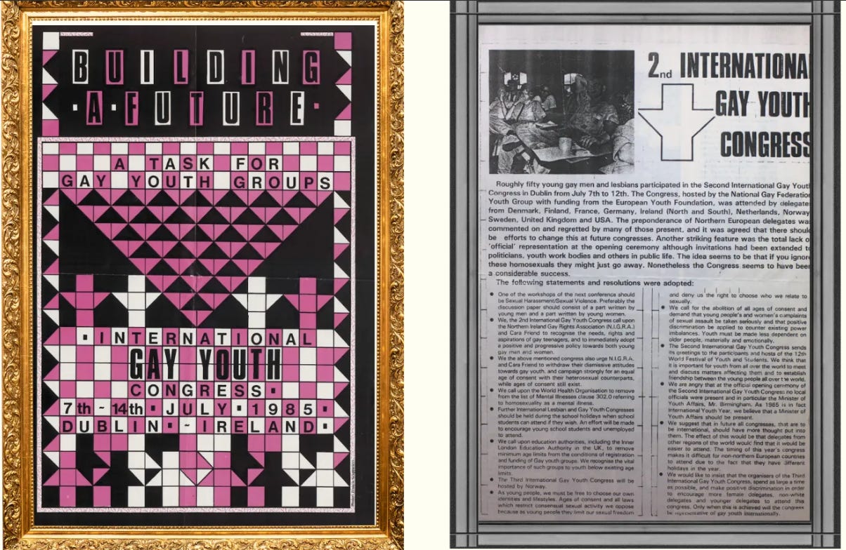 It was in the midst of this paedo revival, in 1984, that COC decided the time was ripe to invite a roomful of “girls and boys” (ages 16- 27) to talk about their “friendships and desires”. The following year in Dublin, the youth gathering published a resolution calling for the abolition of age of consent laws. All age of consent laws. IGLYO currently advertise this resolution on their website.
