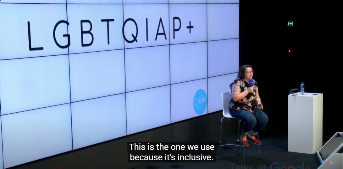 I managed to get in touch with someone who participated in one of their volunteer training sessions. This person told me: “There was not much about LGB. We were told we can use whatever acronym we want but make sure we don’t cut it off before the T,” and “The overall opinion was that there are not enough labels.”